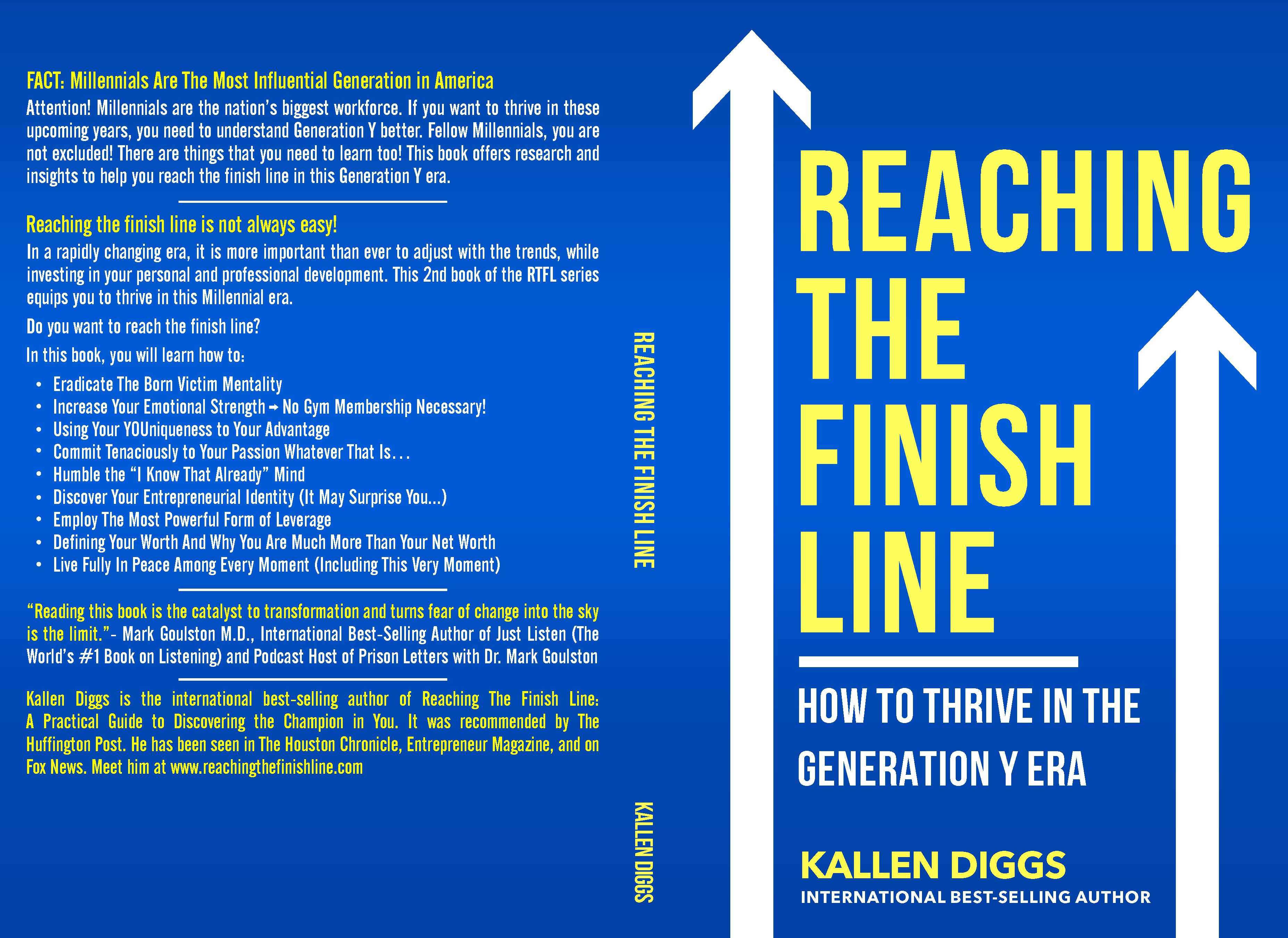 Reaching the Finish Line: How to Thrive in the Generation Y Era is the book for Millennials and Generation Z to reach the finish line in a rapidly changing era. Moreover, this book includes quotes from top experts (including Kim Kaupe [As Seen on Shark Tank], Aubrey Marcus [Onnit], Lori Cheek [As Seen on Shark Tank]) that I extracted from my interviews with them.